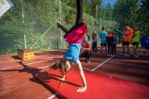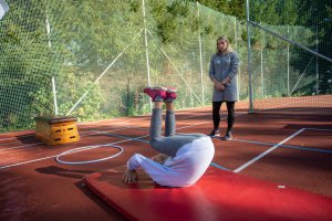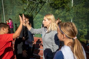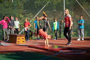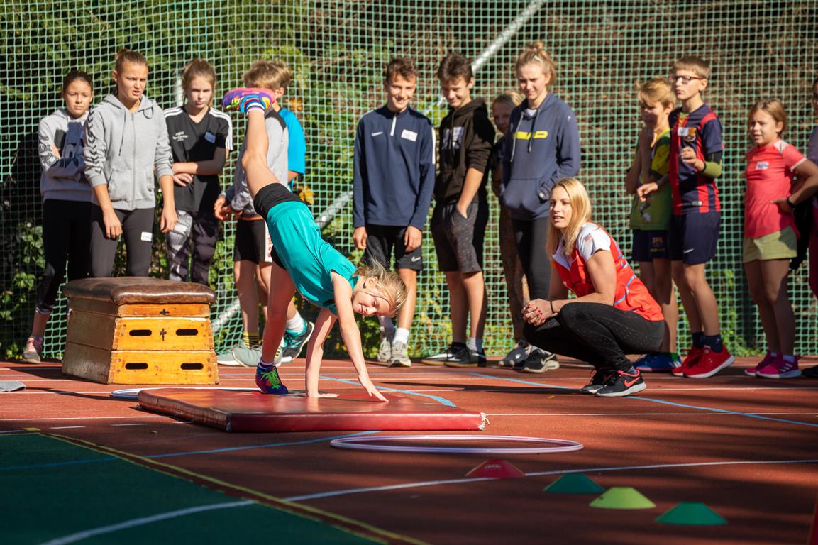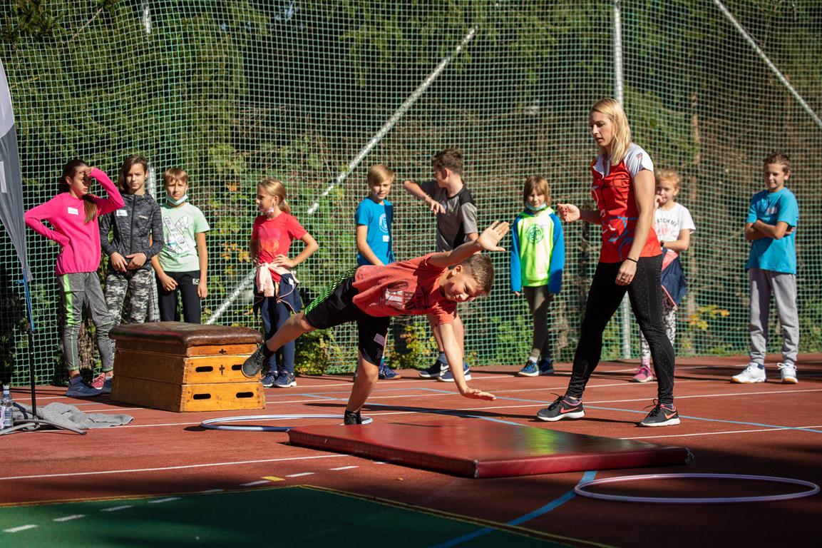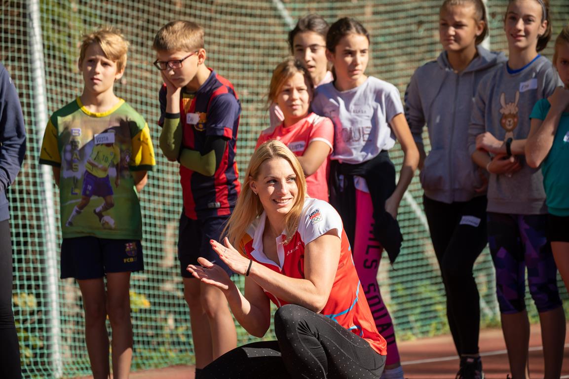 Olympijský trénink s gymnastkou Komrskovou na ZŠ Slovenská ve Zlíně