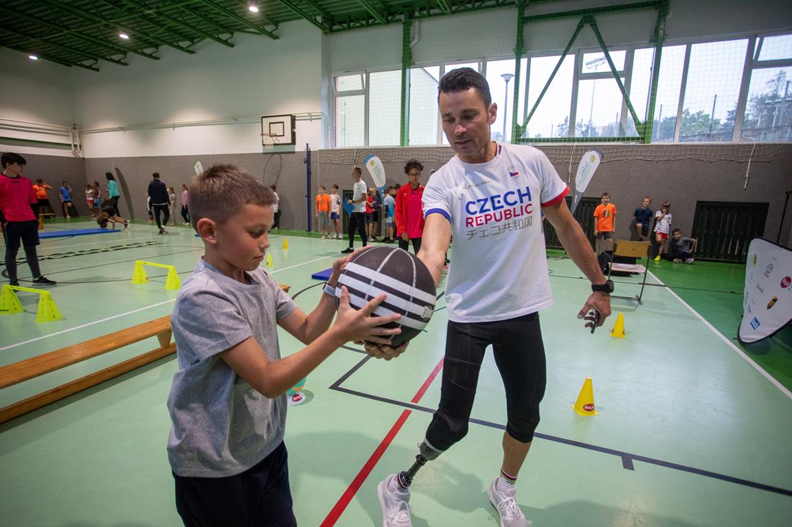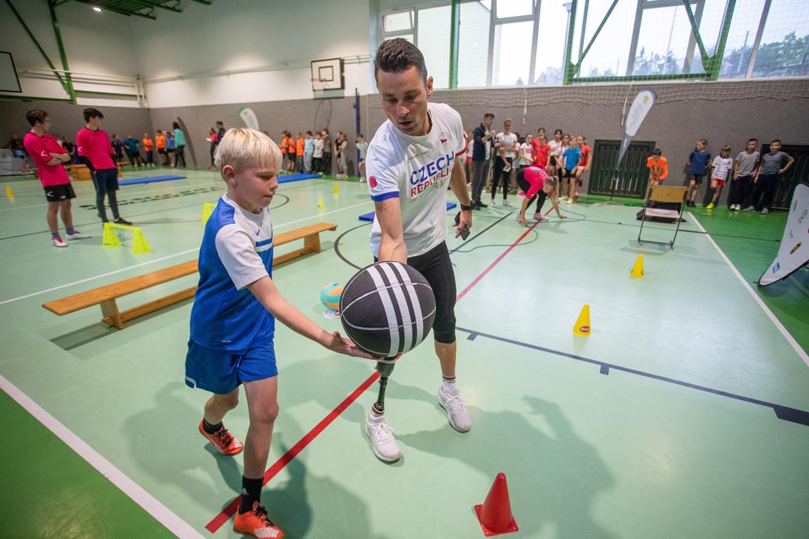 Olympijský trénink s paralympikem Jiřím Ježkem v ZŠ Zborovského Tábor