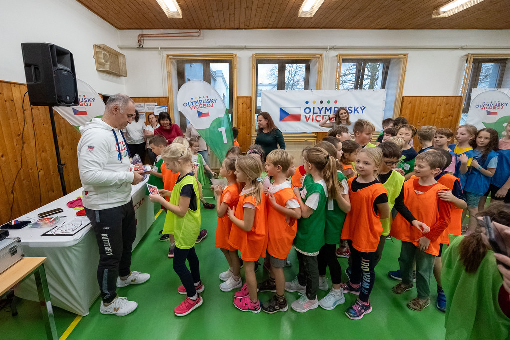 Olympijský trénink s Petrem Korbelem na ZŠ B. Němcové, Rožnov p. R.
