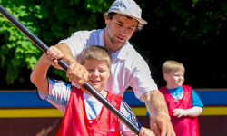Tělocvičnou se rozléhá zvonivý dětský smích. Platí to na každé škole, kam s Olympijským tréninkem dorazíte. Školy ho získávají jako odměnu za svou aktivitu v projektu Olympijský víceboj, který letos slaví už 10 let. „Tohle má velký smysl,“ říká kanoista Lukáš Rohan. Stříbrný olympijský medailista z tokijských peřejí je jedním z desítek elitních českých sportovců, kteří za školáky pravidelně vyrážejí.