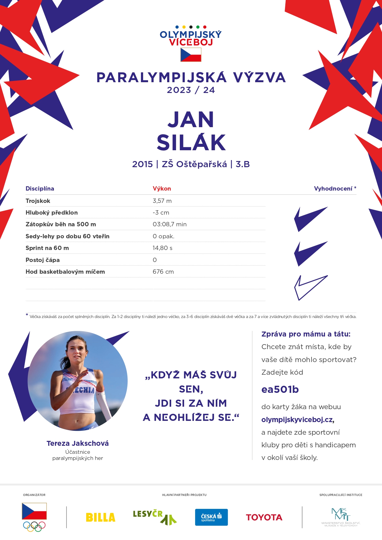 Stejně jako u dětí bez handicapu si musí zvolit, zda se chce věnovat Olympijskému diplomu, Olympijskému odznaku, nebo jestli zkusí s dětmi oba programy. Nezáleží ale tolik na tom, jaké děti budou mít výsledky, ale aby dané disciplíny zkusily absolvovat.